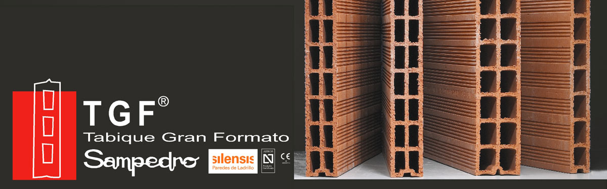 Cerámica Sampedo amplia la gama de tabiquería gran formato añadiendo dos formatos nuevos a la familia TGF® Sampedro :TGF®70X52X5, TGF®70X52X6, TGF®70X52X7, TGF®70X52X9,TGF®70X52X10 y TGF®70X35X11,5(Hueco Triple).TGF® y sistema constructivo Silensis.TGF ® Sampedro tiene su aplicación tanto en tabiquería para cualquier tipo de edificación, como para la realización de paredes separadoras que consiguen un alto aislamiento acústico,»Sistema constructivo Silensis», así 2 hojas de TGF de 7 + 4 cm. de lana de roca + bandas de EPS elástificado en todo su perímetro cumple el DB-HR como pared separadora entre un recinto protegido y cualquier otro recinto protegido o habitable de otra unidad de uso, consiguiendo un aislamiento acústico DNTA >= 50dBA.El departamento técnico de Cerámica Sampedro realiza gratuitamente un estudio acústico por medio de la Herramienta Silensis (desarrollada por Labein e Hispalyt), aportando detalles constructivos y la ficha justificativa de la opción general de aislamiento acústico del DB-HR. Este trabajo se complementa con el Certificado Silensis, un certificado con validez jurídica que Cerámica Sampedro entrega al finalizar la obra.Los productos de Cerámica Sampedro llevan el sello de la calidad.La empresa tiene implantado un sistema de gestión de la calidad, conforme a las exigencias de la Norma Española UNE-EN ISO 9002:1994. Cerámica Sampedro dispone de infraestructura específica en materia de calidad, como un laboratorio de ensayo y calibración, en el que diariamente se realizan los ensayos y controles que garantizan la calidad del producto.TGF® Sampedro posee marca Aenor y marcado CE.